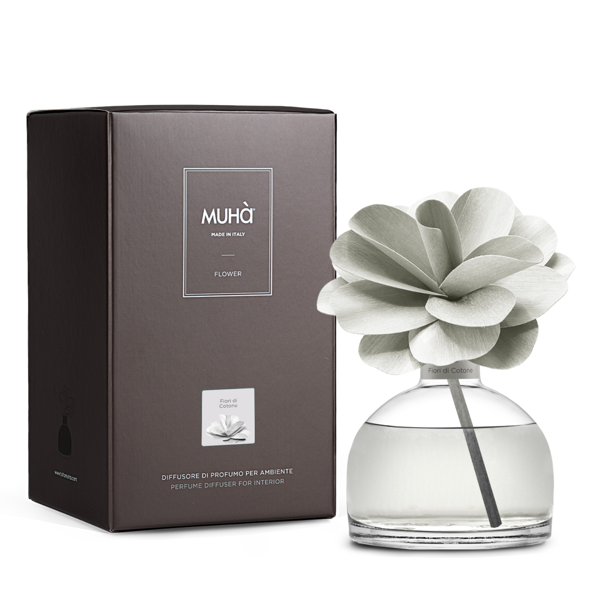 Les diffuseurs Muhà sont conçus pour parfumer votre espace avec élégance et subtilité. Composé d'un flacon en verre transparent, le diffuseur est surmonté d'une fleur en bois de bouleau fabriquée et moulée à la main, qui absorbe le parfum et le diffuse progressivement dans la pièce. Chaque fleur est plus qu'un simple élément décoratif. Parfait pour tous les espaces de la maison, du salon, le diffuseur Fiore est une idée de cadeau. Fabriqué en Italie, ce diffuseur interprète le parfum comme une expérience sensorielle complète, où l'esthétique, la matière et la sensation s'entremêlent pour créer une atmosphère unique et personnelle. Pour prolonger votre expérience olfactive, des recharges sont également disponibles à l’achat, vous permettant de réutiliser votre flacon tout en conservant la même qualité de diffusion.
